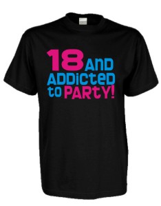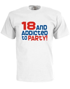 T-Shirts mit Aufdruck 18 and addicted to party
